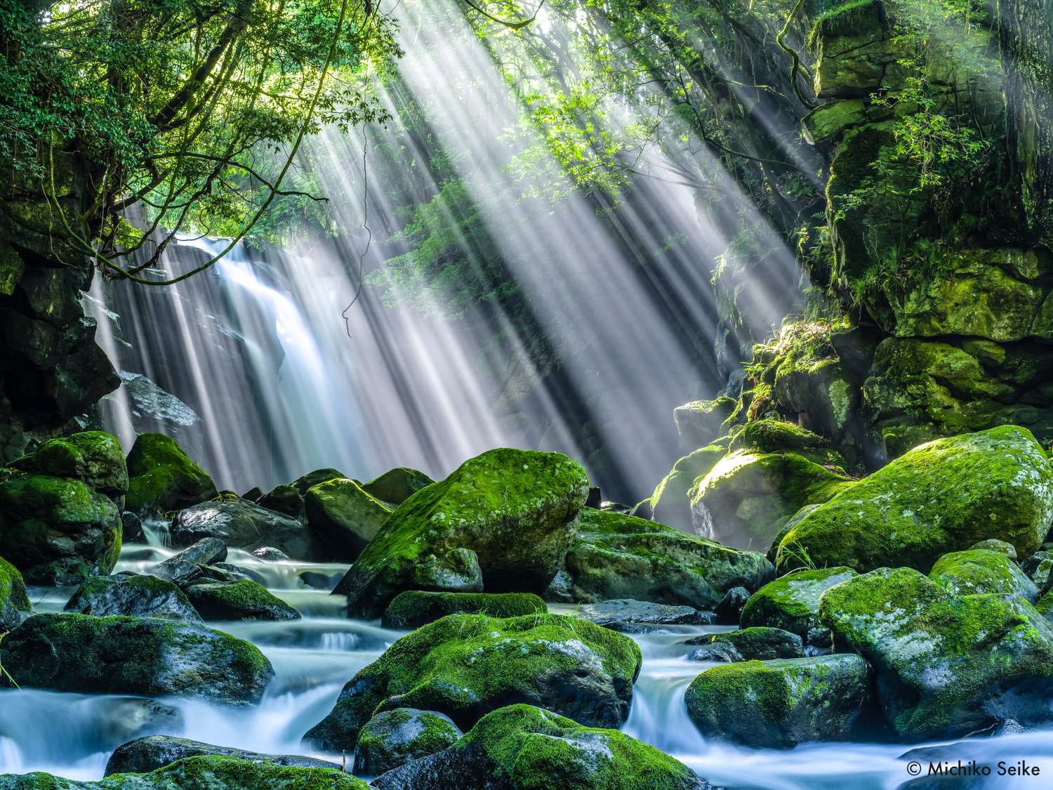 夫婦滝の光芒 熊本県 撮影/清家道子